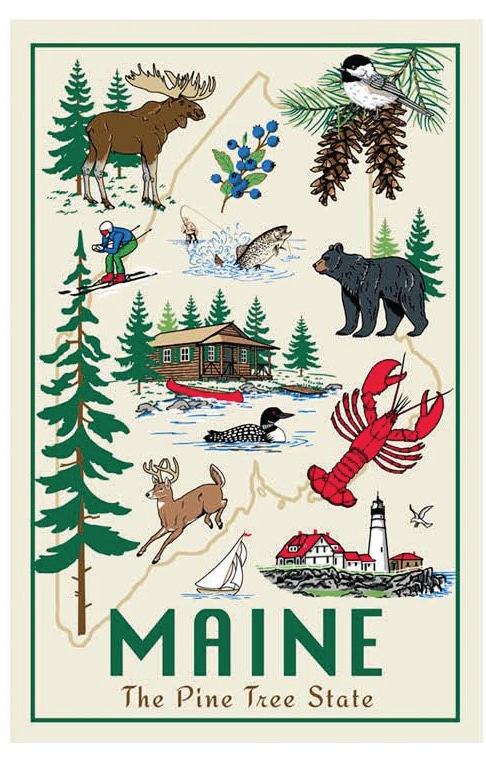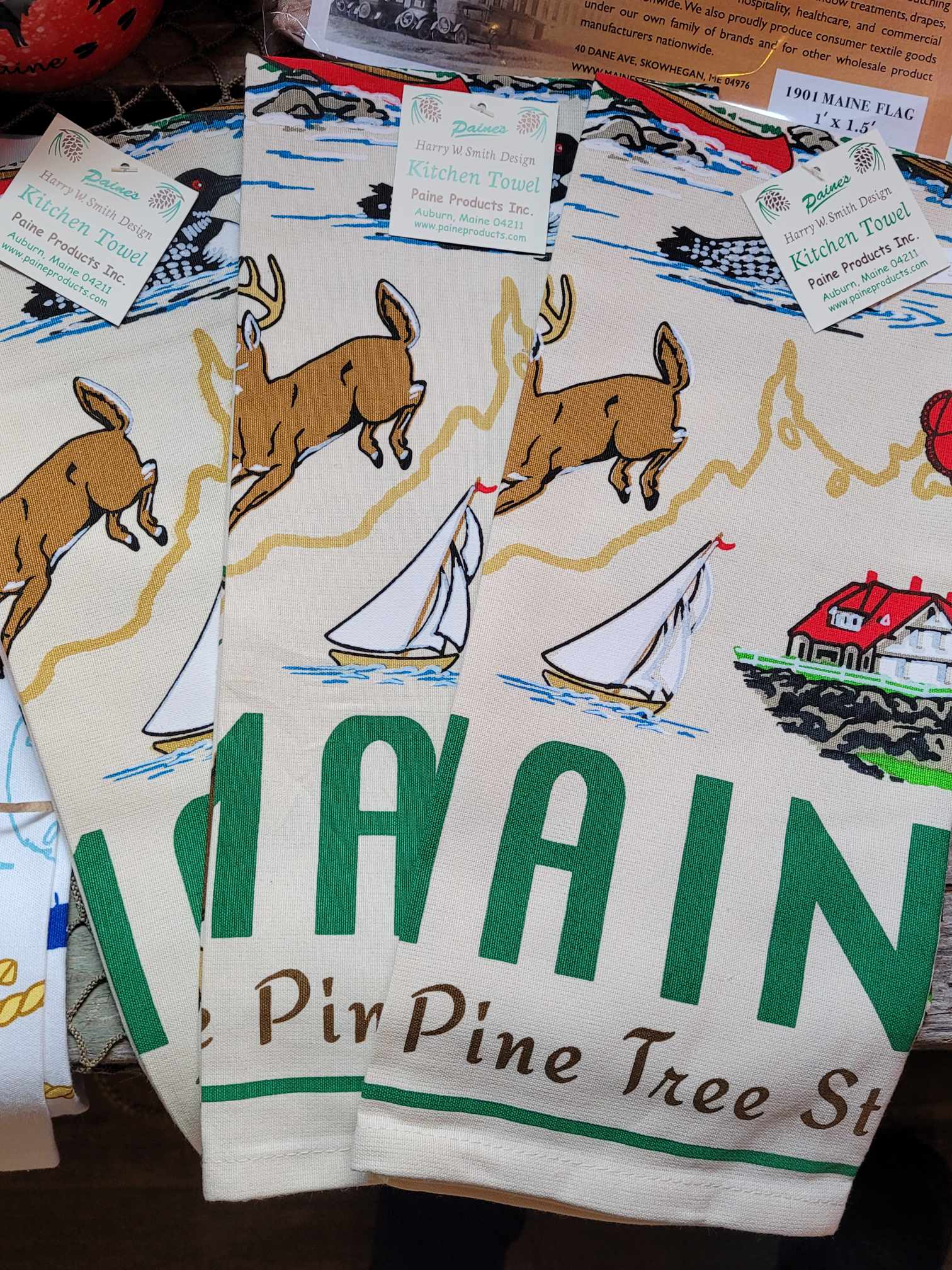 Maine themed Kitchen Dish Towels made from 100% Cotton. Made in Maine by Paine Products based out of Auburn, ME.